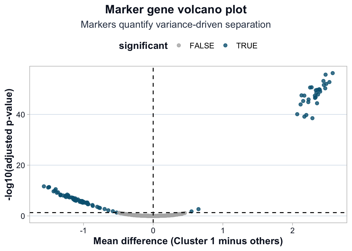 clusters <- factor(clusters)Marker Genes and Variance-Driven Separation